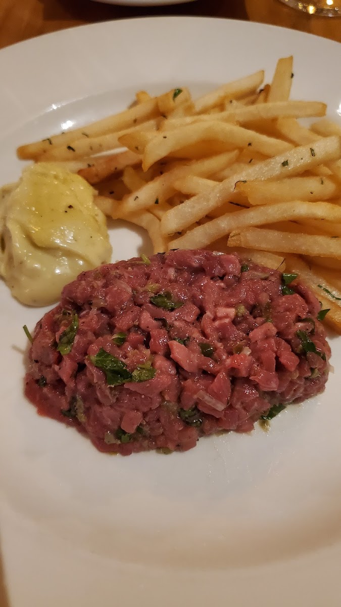 Really great dining on the patio. Was pet friendly and was offered a water bowl as well! Food was excellent. Especially enjoyed the Steak Tartare with the pastry! You'll have to find street parking for this, we were lucky to find one right at front.